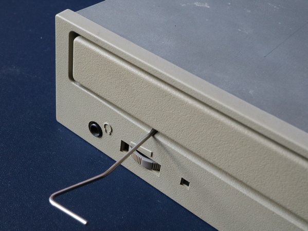 | 插入鐵線推出 CD-ROM 的托盤 |